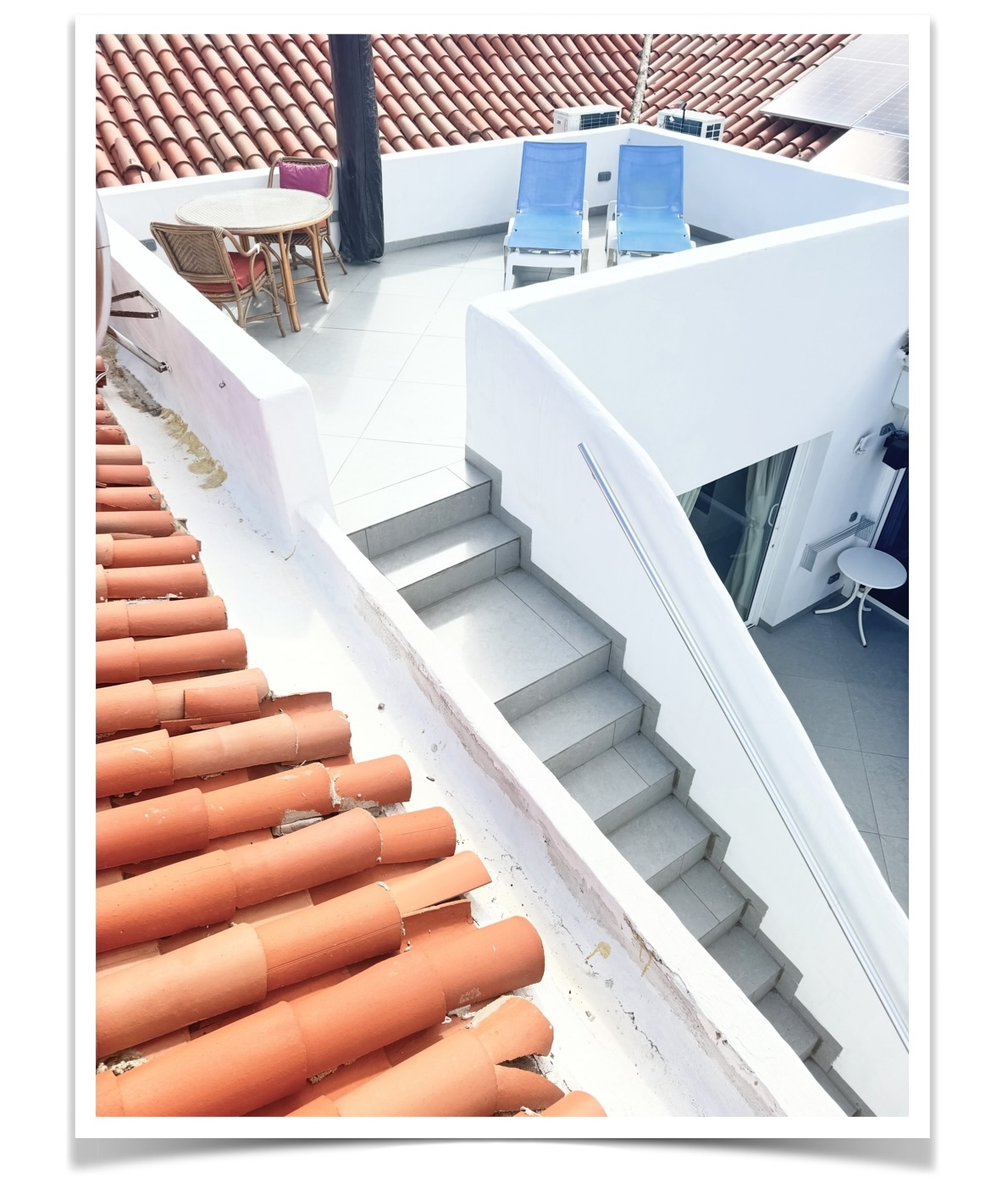 • Drei Terrassen inkl. Dachterrasse mit Sitz- & Liegemöglichkeiten, jeweils mit Sonnenschutz.